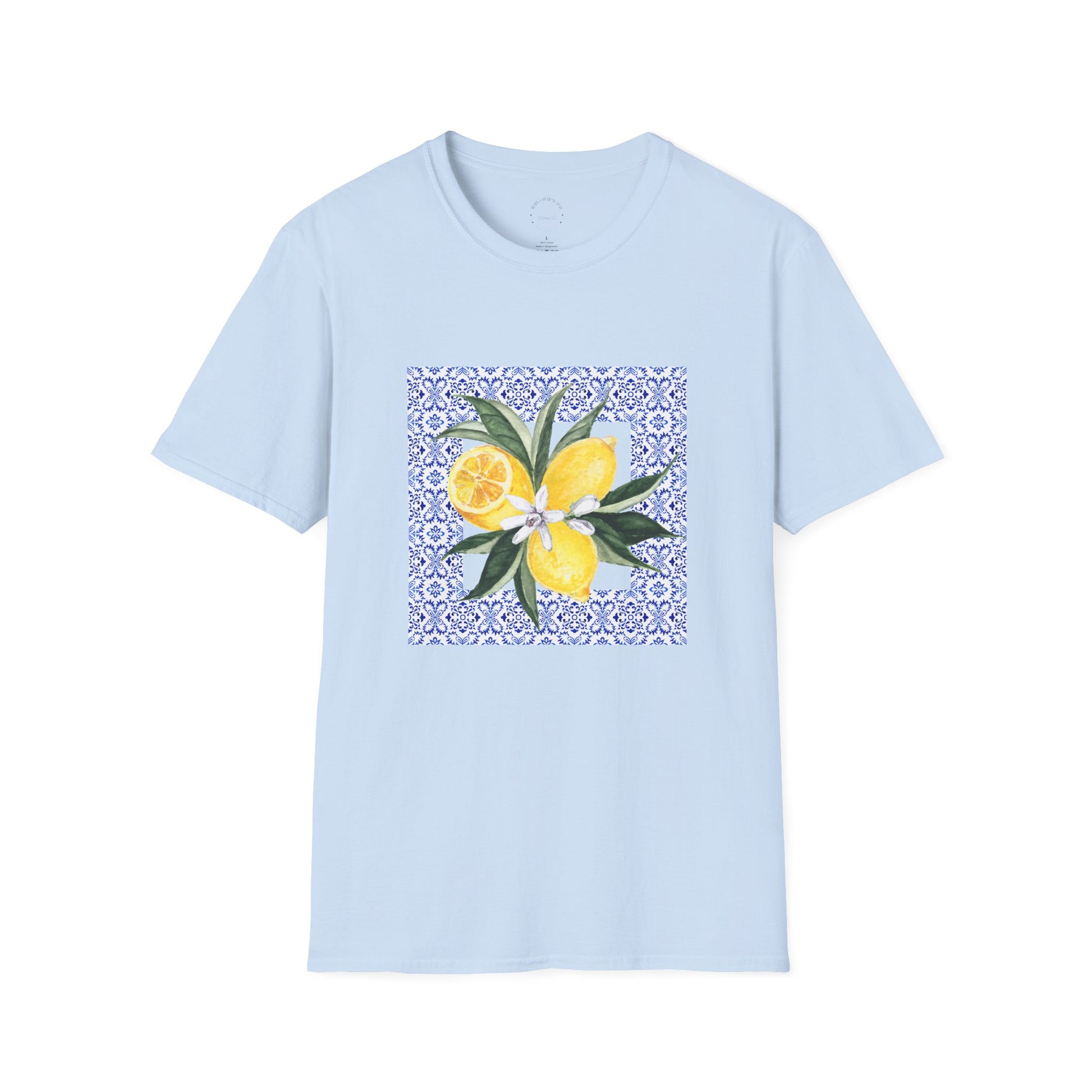 Bring a slice of the Amalfi Coast wherever you go with this stunning tee, featuring vibrant lemons and intricate mosaic tile patterns inspired by Italian ceramics. With sunny yellows, soft blues, and timeless Mediterranean flair, this design feels like a summer escape in every wear.