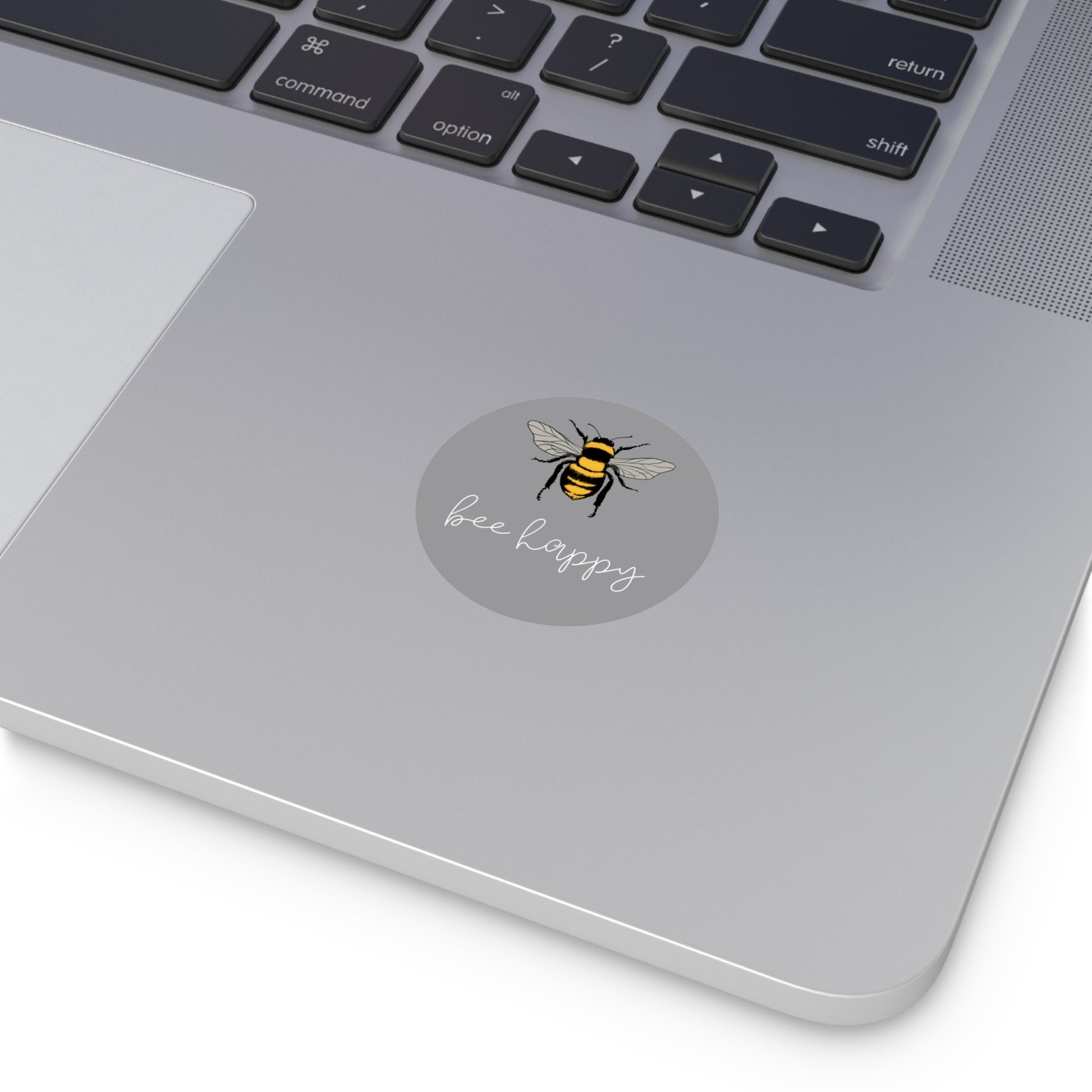 Bee Happy Round Vinyl Stickers, Inspirational Bee Stickers, Cute Nature Decor, Gift for Gardeners, Positive Vibes Stickers