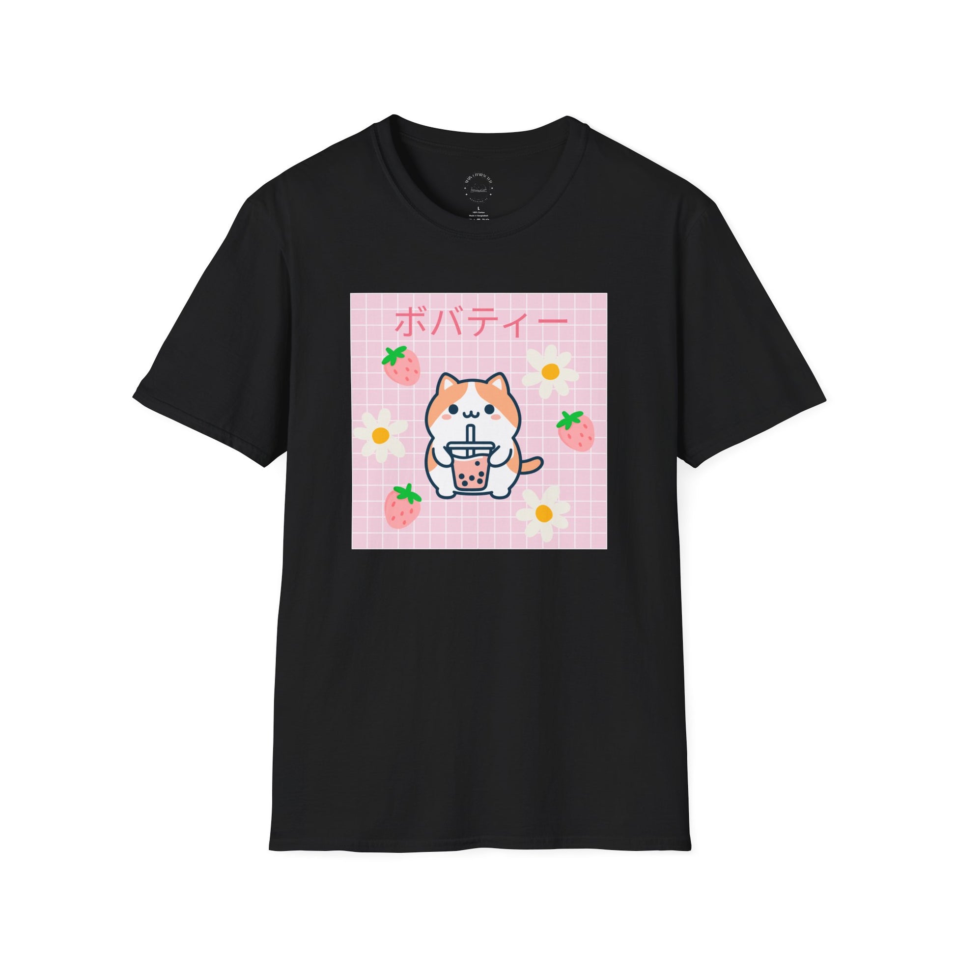 Boba Cat Graphic Tee, Unisex Softstyle T-Shirt, Kawaii Fashion, Anime Style Top