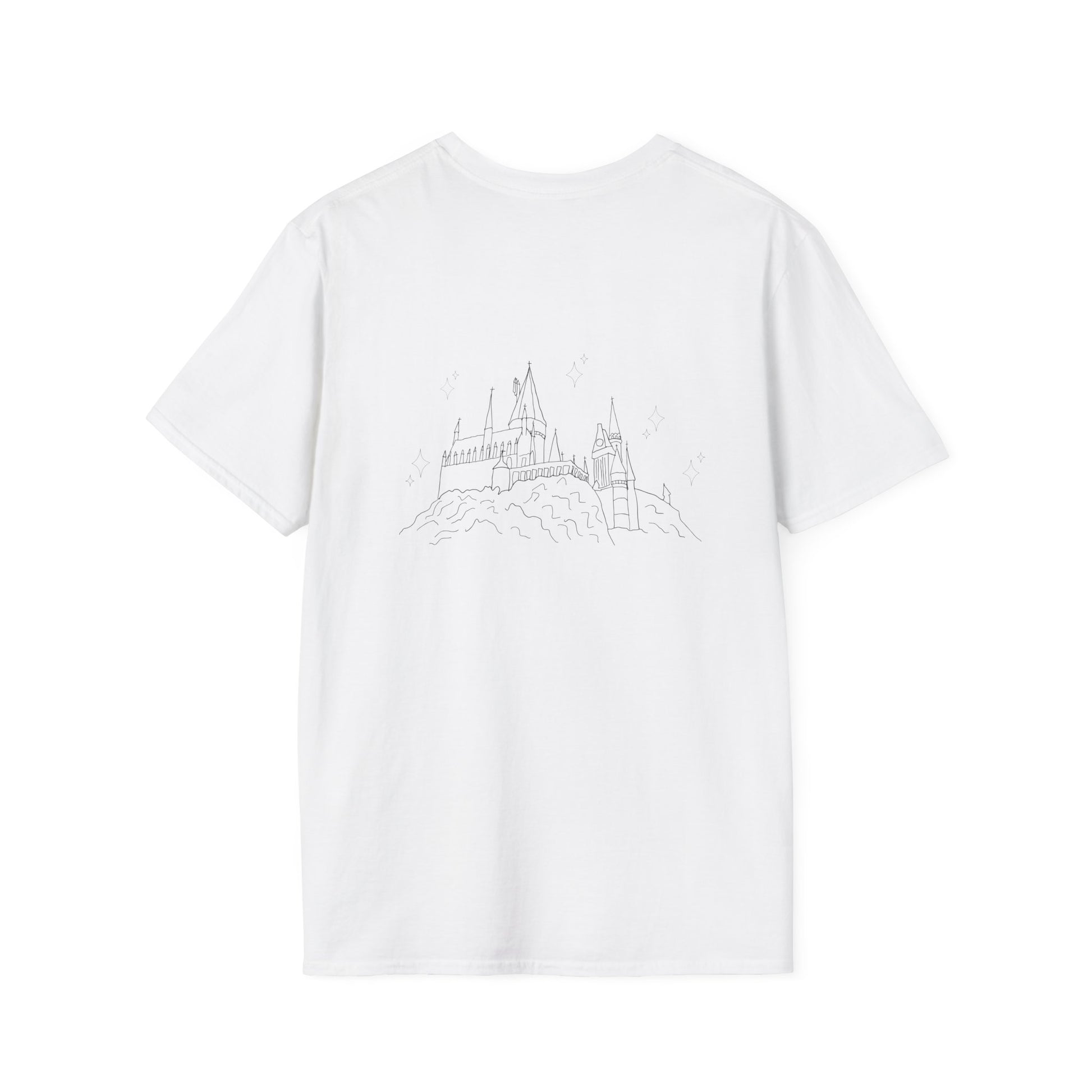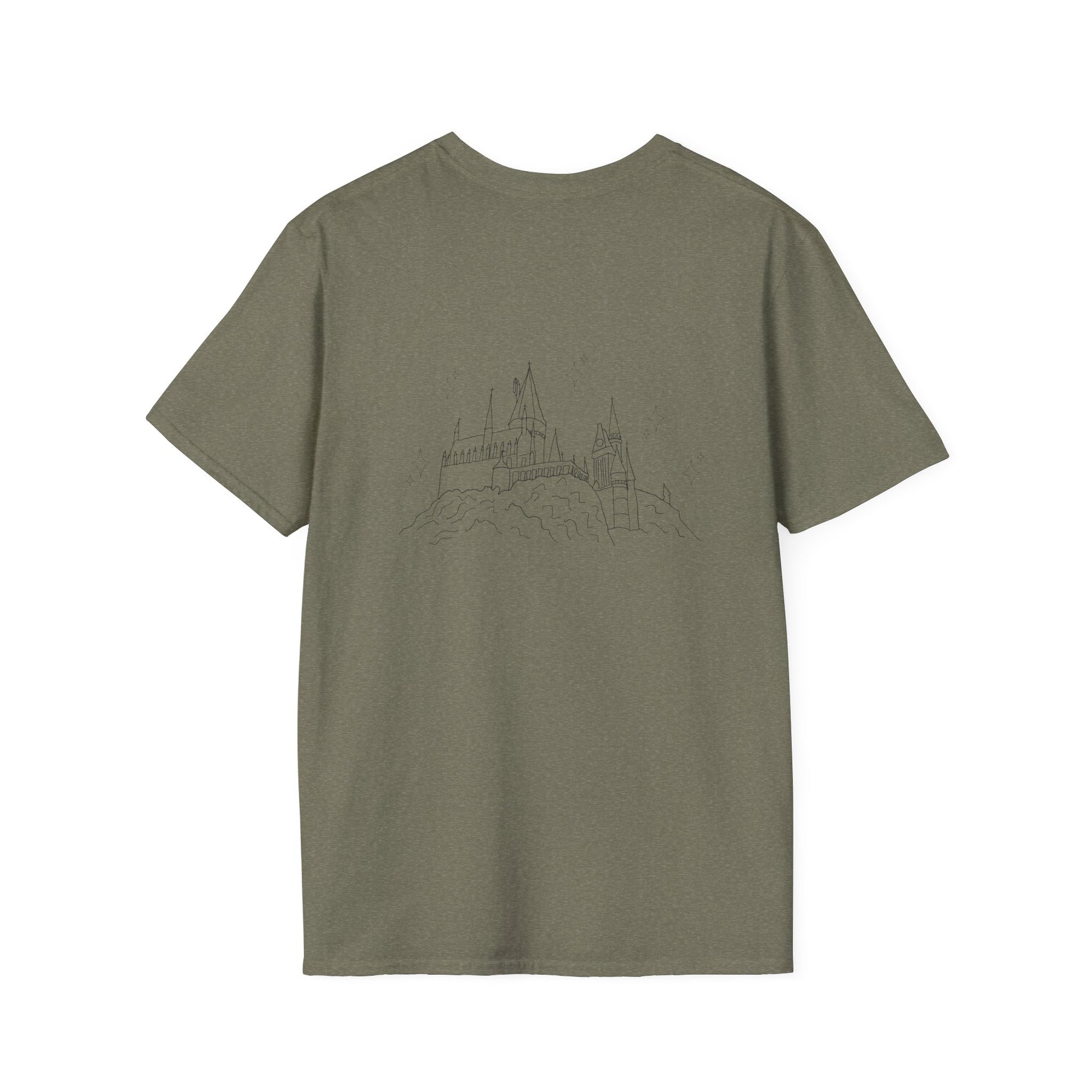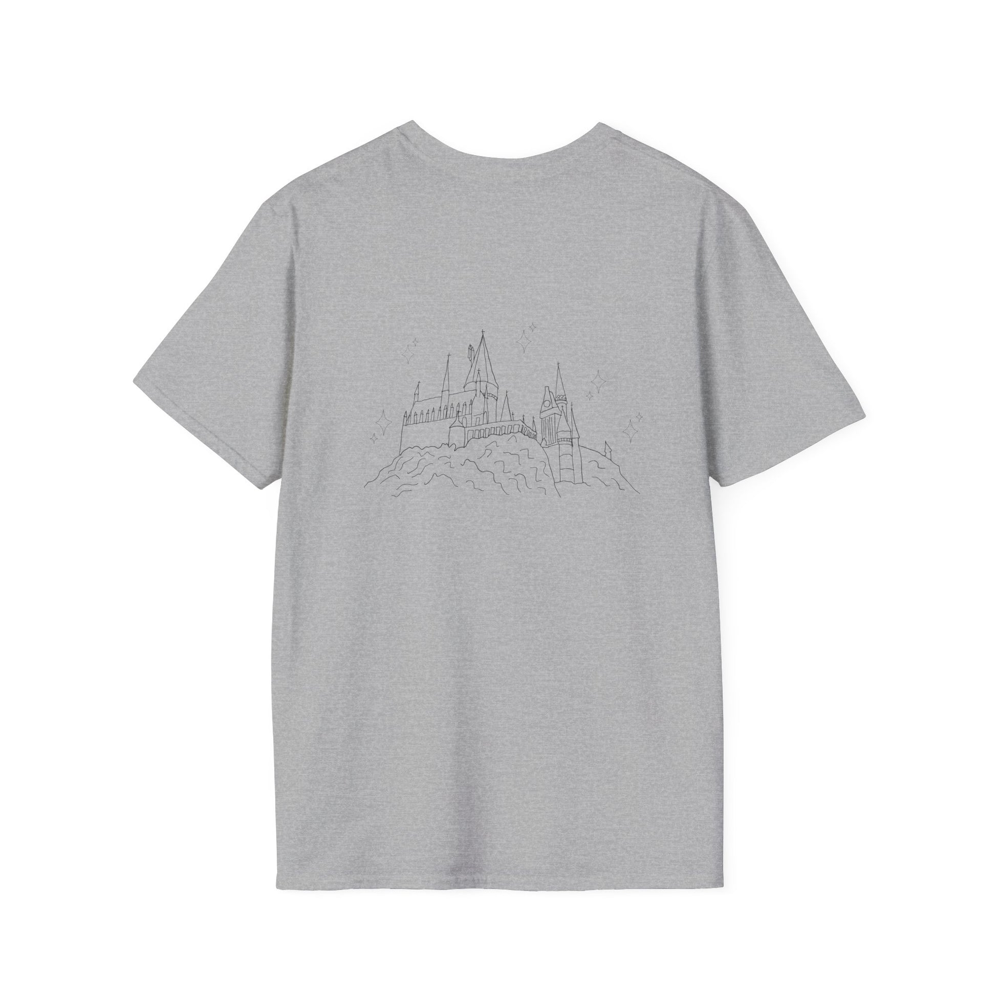 Subtle magic, timeless style. This enchanting tee features a minimalist outline of the iconic Hogwarts castle on the back, with a classic Hogwarts house emblem on the front 🦁🐍🦅🦡. It's the perfect way to show your love for the Wizarding World without shouting spells in public. Soft, comfy, and perfectly magical for students, alumni, or everyday Muggles with Hogwarts in their heart.⚡