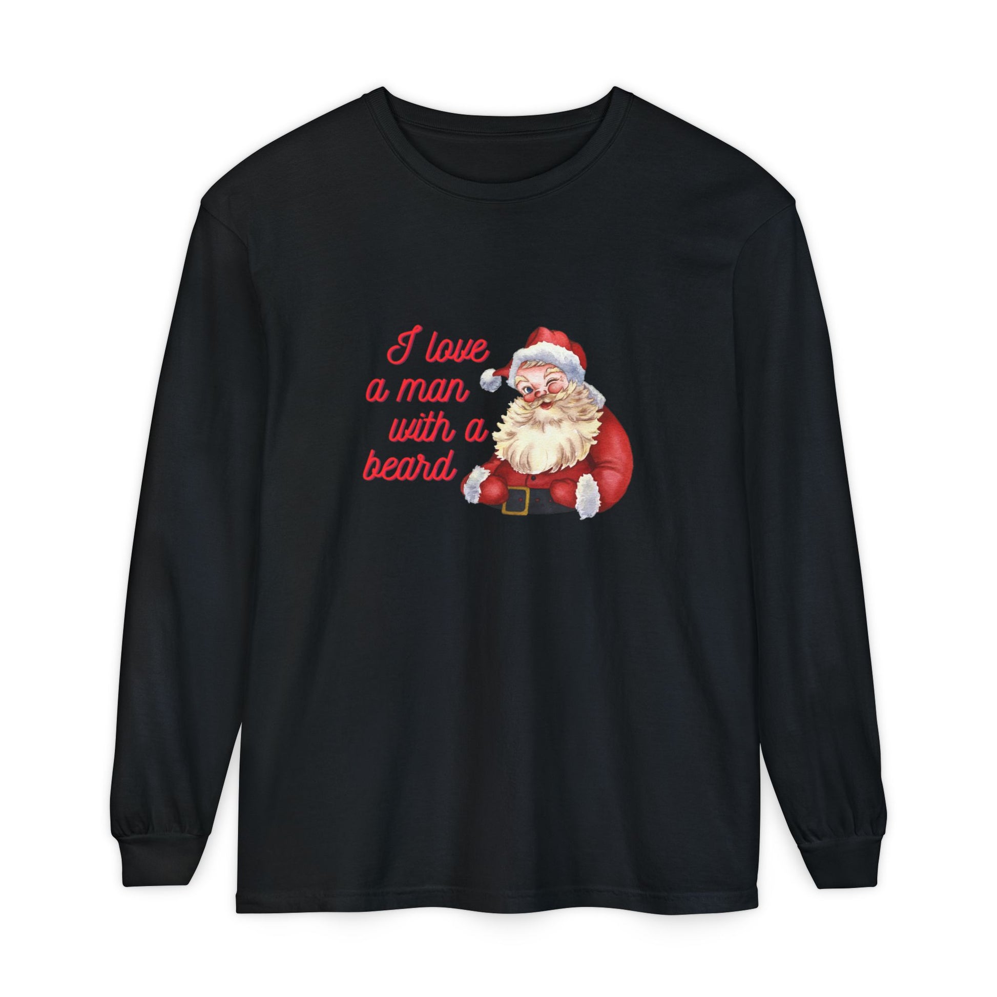 Santa Beard Christmas Long Sleeve Tee — "I Love a Man with a Beard"